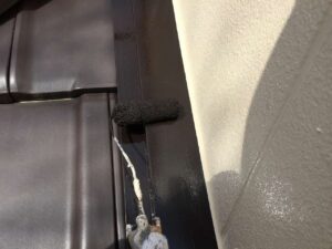 下屋根水切り 中塗り (無機フッ素塗料を使用)